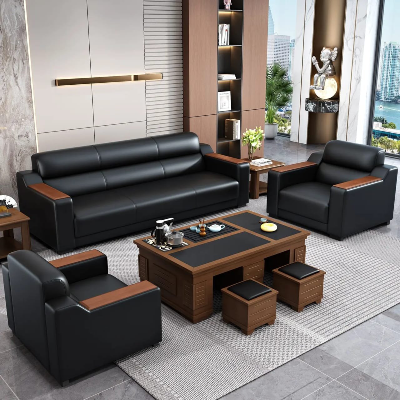 Commercial Modern Reception Office Sofa Set Synthetic Leather Customizable Design Home Office & Hotel Use