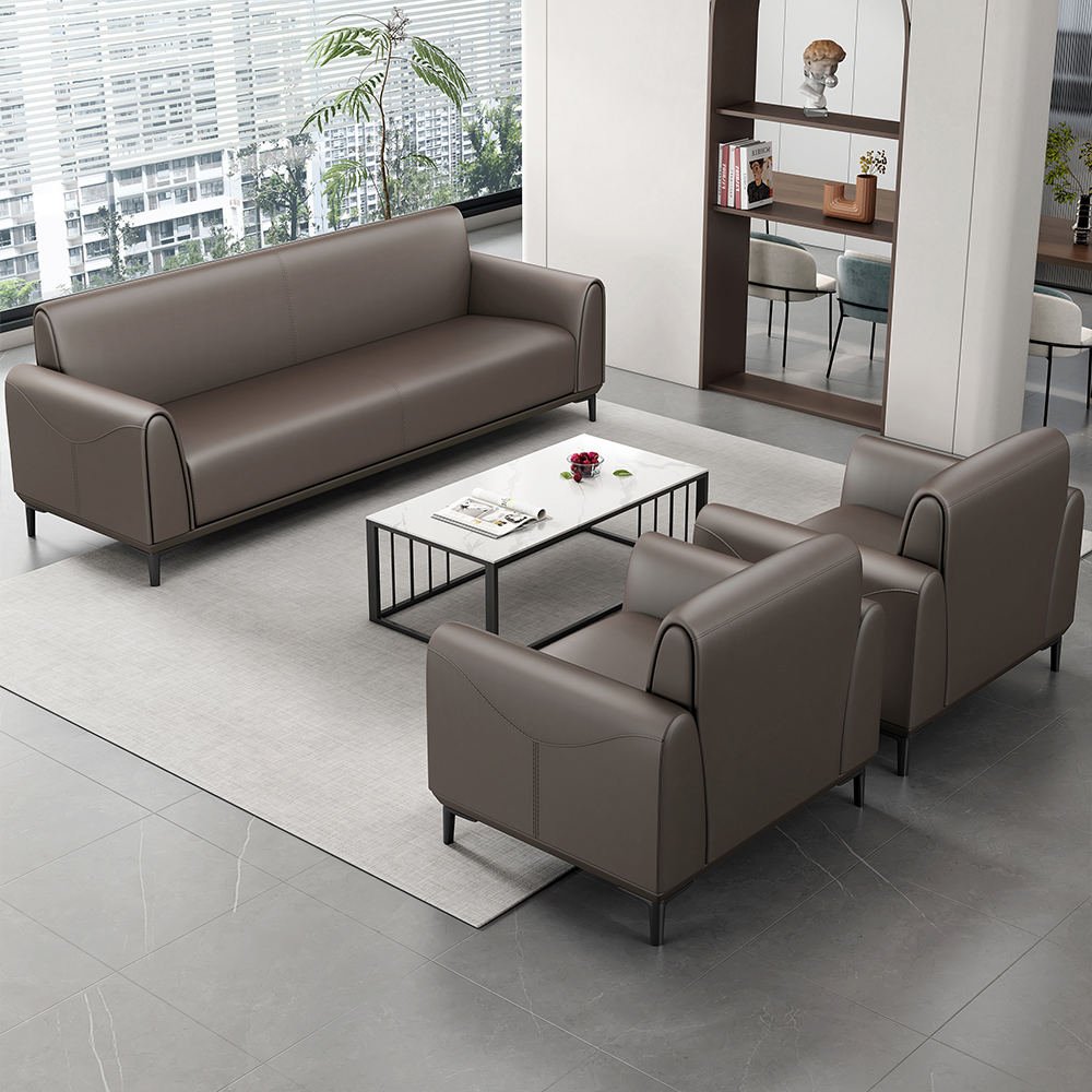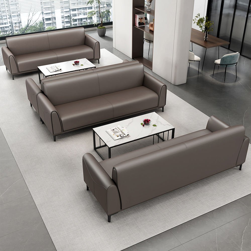 Constructed with a sturdy wood frame and metal legs, the sofas provide reliable support and durability, while the high-density sponge cushions ensure exceptional comfort for prolonged seating. Upholstered in premium leather, the sofas are easy to maintain, durable, and exude a professional, luxurious feel.